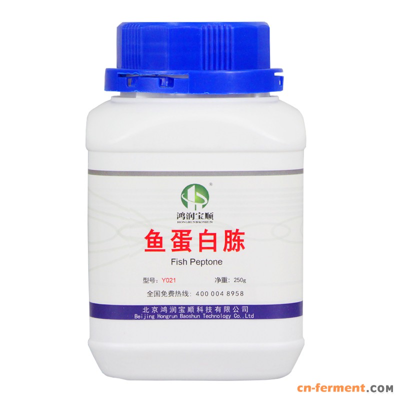 鱼蛋白胨:英文名称: Fish Peptone,本品系用新鲜鱼类精制加工而成的干燥粉末,色泽呈类白色。本公司生产的鱼蛋白胨以深海鳕鱼为主要原料,经酶解法或微生物发酵法生产的主要成分为小分子肽(胨氮含量高)及氨基氮的粉末状产品,其中小分子肽含量高于骨蛋白胨,易于微生物吸收,加快微生物生长。产品型号:鱼蛋白胨Y021。
