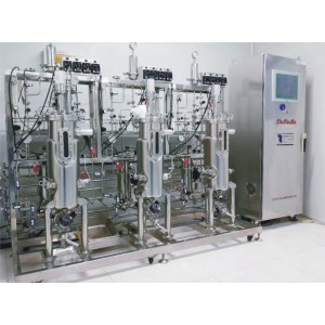 BLBIO-A型、B型、C型、D型控制系统可选:西门子S7-200系列PLC控制系统,它是一种成熟、稳定、通用型的PLC,能适合自动化的各种应用场合,尤其是生产制造过程控制中的应用。其模块化,易于实现分布式的配置以及易于掌握等特点,西门子PLC控制核心已成为实施生物反应过程控制中既经济又先进的控制体系。系统采用10英寸以上平板电脑控制或采集pH、DO、罐压、温度、转速、空气流量、排气O2、排气CO2、补料称重、发酵液体积等17个直接参数并可计算间接参数。可以通过软件方便的标定pH、DO电极;设定参数的初始控制状态(需方须另配尾气分析仪)。