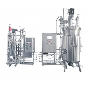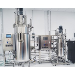 30升罐体:主体材质为全不锈钢316L罐体,罐内无死角;带发酵罐专用取样、放料阀,移种管道。采用大视角罐内液位观察视镜,12V安全视灯,带有温度、PH、 DO、消泡、液位接口、接种口、补料口 、及多个备用口,所有焊缝坚固整齐美观。