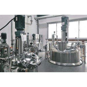 罐体:主体材质为全不锈钢316L罐体,罐内无死角;带发酵罐专用取样、放料阀,移种管道。采用大视角罐内液位观察视镜,12V安全视灯,带有温度、PH、 DO、消泡、液位接口、接种口、补料口 、及多个备用口,所有焊缝坚固整齐美观。