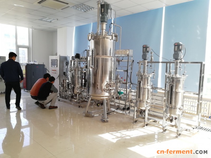100升罐体:主体材质为全不锈钢316L罐体,罐内无死角;带发酵罐专用取样、放料阀,移种管道。采用大视角罐内液位观察视镜,12V安全视灯,带有温度、PH、 DO、消泡、液位接口、接种口、补料口 、及多个备用口,所有焊缝坚固整齐美观。