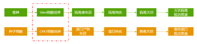 * 灭活病毒疫苗和重组蛋白疫苗生产流程示意图