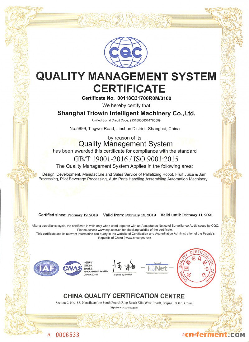 | 发证机构: | 中国质量认证中心 | 发证时间 : | 2018-02-12 |