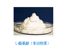 L-酪氨酸(非动物源,发酵法)属氨基酸的一种,结晶性粉末,从酪蛋白或玉米等含蛋白质物质的水解液中提取,是人体非必需氨基酸。医药上用作治疗甲状腺功能亢进,也可做为食品添加剂。