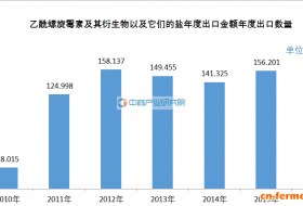 2016年前4月乙酰螺旋霉素及其衍生物以及它们的盐出口数量为52.811吨