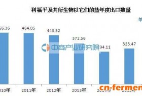 2016年前4月利福平及其衍生物以它们的盐出口105.92吨