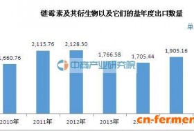 2016年前4月链霉素及其衍生物以及它们的盐出口670.86吨