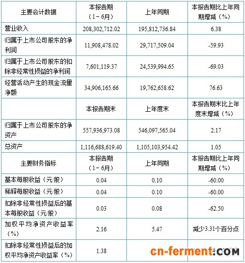 钱江生化2015年上半年主要会计数据和财务指标