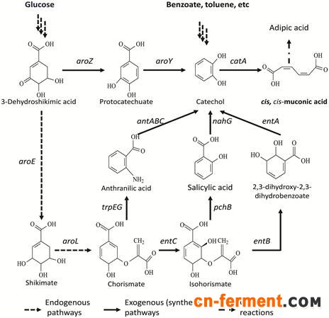最近,天津工业生物所进化与代谢工程研究组与南开大学林建平研究组合作,对己二酸生物合成途径中的重要关键酶儿茶酚1,2-双加氧酶进行了理性设计和优化改造,有效提升了己二酸前体物粘康酸的产量。