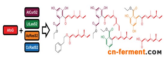 大部分农业和临床使用的聚酮类化合物都来源于细菌,随着从细菌中筛选新型聚酮类化合物机率的降低,从真菌中获得聚酮化合物日益受到关注。在细菌和真菌中,分别有不同的聚酮生物合成系统。对于细菌聚酮化合物生物合成的机制研究比较深入,通过异源基因组合共表达,能够实现细菌聚酮抗生素的工程化合成,但对于真菌,由于其聚酮化合物程序化合成的机制研究不深入,目前还不能大规模实现真菌聚酮工程化的组合生物合成。