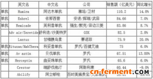 2013 年全球前十大重磅畅销药有6 个均是单抗: