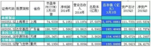 按照Wind行业分类,截止2016年3月3日,A股共有主营生物科技非ST上市公司25家,总市值3716.75元,占A股总市值不足1%,市盈率中位数为51倍,低于A股市盈率中位数62.77倍,考虑到生物医药公司基本为中小创上市公司,中小板市盈率中位数为66.55倍,创业板市盈率中位数为85.16倍。生物医药企业代表新经济的发展方向,龙头受到市场的认可和追捧,市盈率较高。但,从市盈率中位数上看,生物科技公司估值仍有提升空间。且其市值占A股总市值比重很低,说明资本市场服务生物医药产业的能力仍待挖掘。