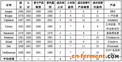 海外较为成功的生物医药公司从成立到上市的平均年限为4 年,从上市后到盈利的平均年限为7 年,盈利之后企业将出现非线性增长。