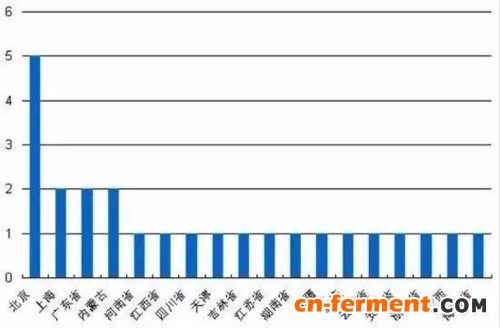 北京5家,上海2家,广东2家,内蒙古2家,其他为一家。