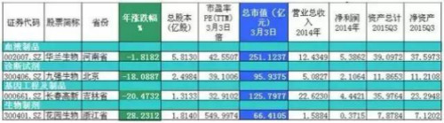 血液制品4家,诊断试剂4家,基因工程及制品5家,生物制剂12家。