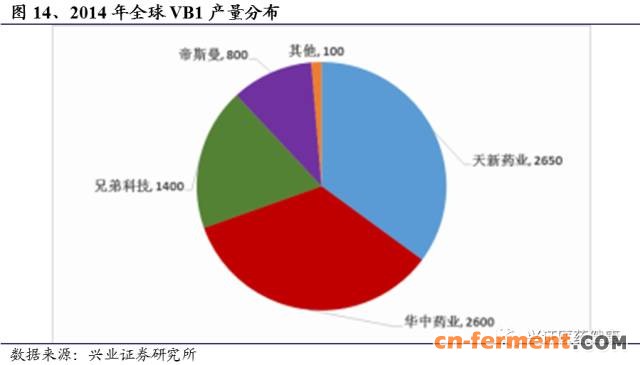 行业概况:维生素B1属于小品种维生素,目前维生素B1全球总需求量约9,000吨,其中饲料级维生素B1的全球需求量为5,000吨左右。由于行业连续多年不景气,生产企业纷纷退出VB1市场,目前国内主要生产企业为湖北华中药业有限公司、兄弟科技、江西天新药业有限公司,产能大约为1万吨。