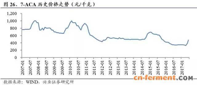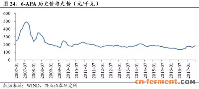 6-APA:17年6月均价185元/千克,环比上涨5.71%,目前报价185元/千克。联邦制药技术不断提高,产能不断扩大,成本优势突显,长期来看预计6-APA价格变化不大。