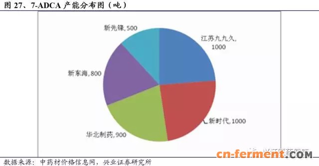 行业概况:7-ADCA是一种重要的头孢类抗生素中间体,是传统的合成头孢菌素三大母核之一,是头孢类系列产品头孢氨苄、头孢拉啶、头孢羟氨苄等抗生素的中间体。目前我国7-ADCA主要的生产企业为九九久、新时代等。