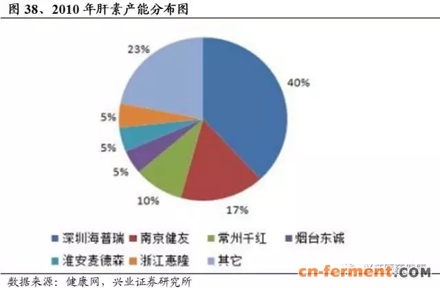 欧美发达国家是全球肝素类药物的主要消费市场,也是我国肝素原料药的主要出口市场。欧美地区的生猪小肠资源生猪小肠资源利用率和肝素原料药产量已接近极限,尤其2008年发生百特肝素钠污染事件后,国外肝素原料药产量下降,国内肝素原料药产量平均增长率提高到18%,国内产量全球占比也从08年的45%提高到近期70%,同时国内肝素钠生产厂家从原先的几百家锐减至目前的不到50家,产能利用率一直在高位,国内市场集中度提高,目前五家市场份额占比76%。目前海普瑞占有国内市场产比为40%左右,另外主要的生产厂家有南京健友、常州千红、烟台东诚、河北常山等。
