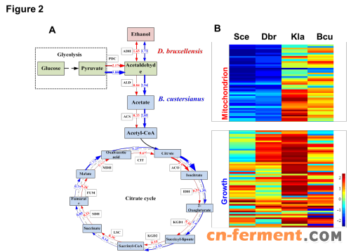 前期研究表明,一亿多年前在酿酒酵母祖先基因组中发生的全基因组重复事件是酿酒酵母分支形成有氧发酵途径的主要原因。中国科学院天津工业生物技术研究所研究员江会锋带领的新酶设计与酵母基因组工程研究团队研究表明,一种名为德克酵母的祖先早在3亿多年前就与酿酒酵母发生了分化,但德克酵母却具有了与酿酒酵母类似的有氧发酵代谢。研究通过比较两类酵母的基因组、转录组以及染色质结构图谱,发现德克酵母没有发生全基因组复制,但有一类AT富集的调控元件同时出现在了两类酵母的线粒体相关基因上,使线粒体相关基因的染色质结构发生了平行进化,最终导致线粒体相关基因表达受抑制,从而形成了有氧发酵代谢。研究表明,自然生物在面临相同的生存环境时,会选择类似的遗传机制形成新的代谢途径,提高物种的环境适应能力。