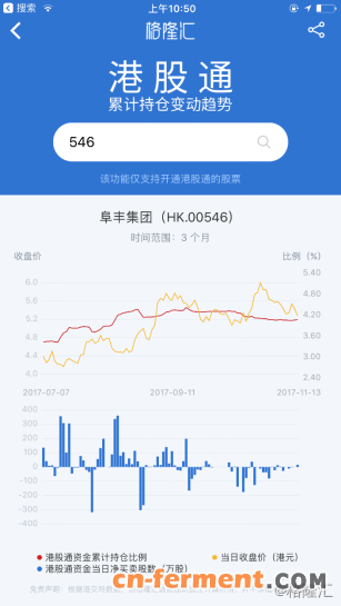 但是另一方面,我们可以看到南下资金倒是非常看好阜丰。港股通的持仓比例总体呈现上升趋势。