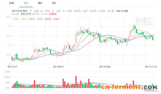 如上文所提,并不是太多投资者会注意到这家身处“夹缝行业”的龙头公司。所以阜丰的交易量最近也算是比较低迷。
