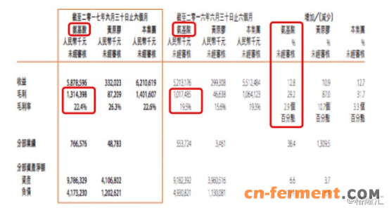 上半年,阜丰的毛利上升31.7%,其中氨基酸部分的毛利率为22.4%,同比增长2.5%。