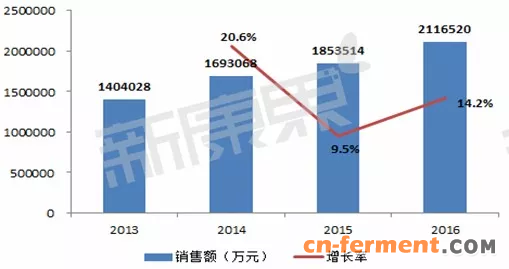 图1 2013-2016年国内调血脂药物市场销售情况