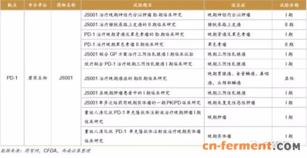 PD-1:产品代号 JS001 的 PD-1 新药目前在国内已进入临床II期阶段,预计2019年能够上市。