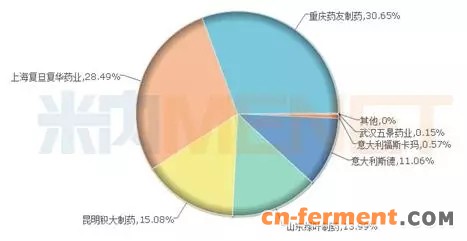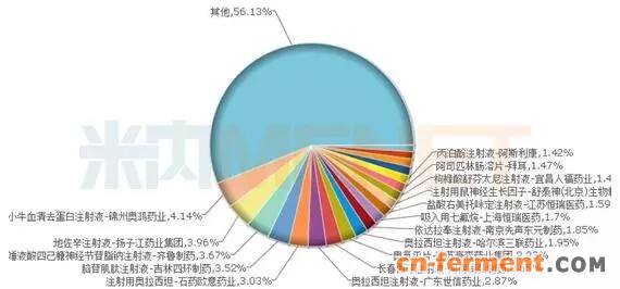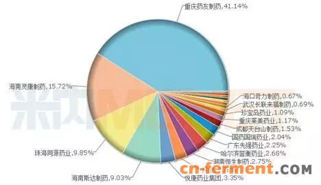 图2:2016年中国公立医疗机构终端还原型谷胱甘肽TOP20格局