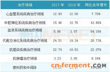 集团的药品制造与研发板块的核心产品覆盖了心血管系统疾病、中枢神经系统疾病、血液系统疾病、代谢及消化系统疾病、抗感染疾病、抗肿瘤以及原料药和中间体等多个领域。2017年,营收最多的领域是代谢及消化系统疾病,为整个药品制造与研发板块贡献了近20%的收入,其次是抗感染疾病治疗领域,为集团带来22.74亿元的收入。而增长最快的领域是血液系统疾病,同比去年增长了64.16%,其次是中枢神经系统疾病,同比去年增长了43.66%。