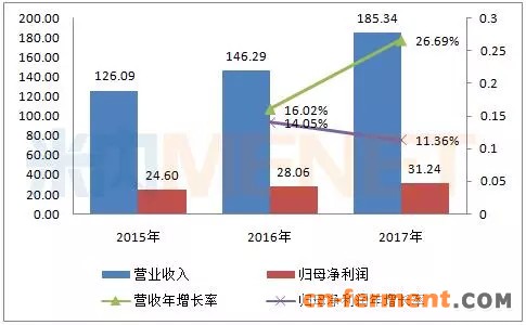 据复星医药年报数据,近几年来,集团业绩实现稳步增长,营业收入由2015年的126.09亿元上涨至2017年的185.34亿元,归母净利润也由2015年的24.6亿元增长至2017年的31.24亿元。虽然恒瑞医药2017年年报还未发布,但根据前三季度业绩可推算,2017年复星医药总体营收仍在恒瑞之上。
