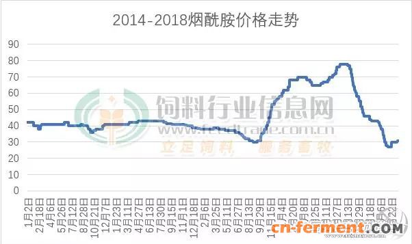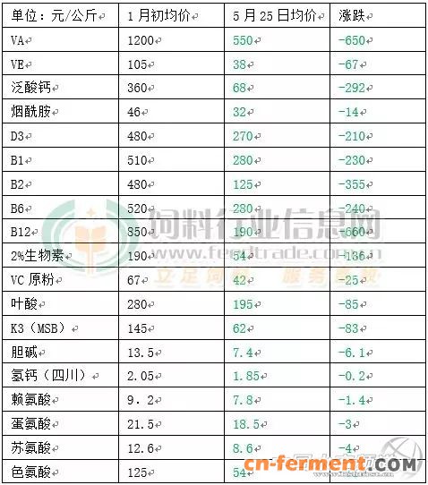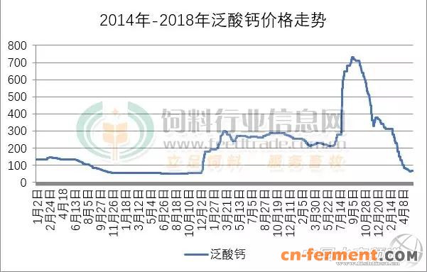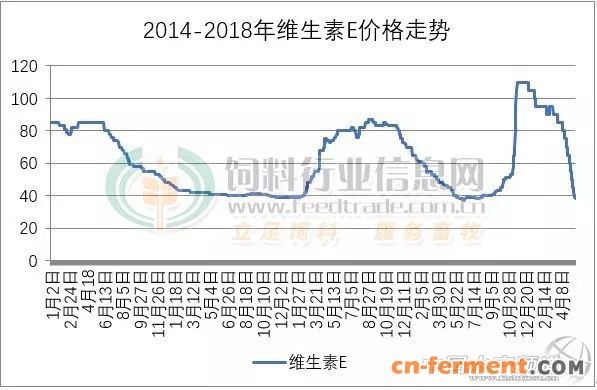兄弟新产能释放以来,烟酰胺价格一路下行,并于4月份破30关口,创出新低,因部分厂家发货渐紧,烟酰胺市场触底反弹,稳中偏强运行;泛酸钙对于历史低点近在咫尺,目前处于低位区间,市场报价多在66-70元/公斤,较此前小幅上涨(参见下图)。