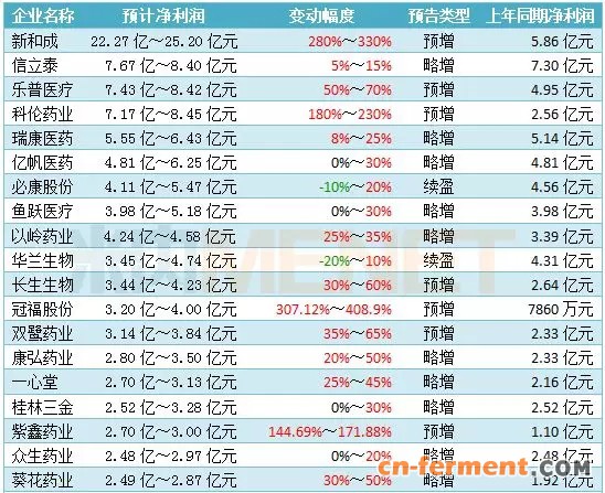 医药网6月11日讯 截至6月8日,共有79家医药企业公布了2018年上半年业绩预告,其中,60家报喜(预增、略增、扭亏),占比超过75%,预计净利润在5亿元以上的有新和成、信立泰、乐普医疗、科伦药业等8家,新和成和科伦药业成为“黑马”,新和成预计净利润超过20亿元,科伦药业预计同比增幅180%~230%。
