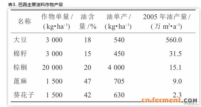 与美国类似,巴西乙醇汽油和生物柴油的销售都是通过混配中心按比例混配后再进入各加油站,营销渠道很规范。政府对乙醇汽油的补贴,是通过税收手段调整乙醇和普通汽油的利益,以鼓励使用乙醇汽油。据巴西石油公司的专家分析,对生物柴油也会采取类似的鼓励政策。巴西石油公司所属生物燃料研发中心是巴西最大的油品研发中心,该中心占地12.2万m2,拥有137个实验室,30个中试装置,已申请950个国际专利。近几年来,该中心对十几种植物进行生物柴油的生产研究,取得了一定成果,目前在巴西广泛应用的是大豆油、棉花籽油、棕榈油、蓖麻油和葵花子油等(见表2)。