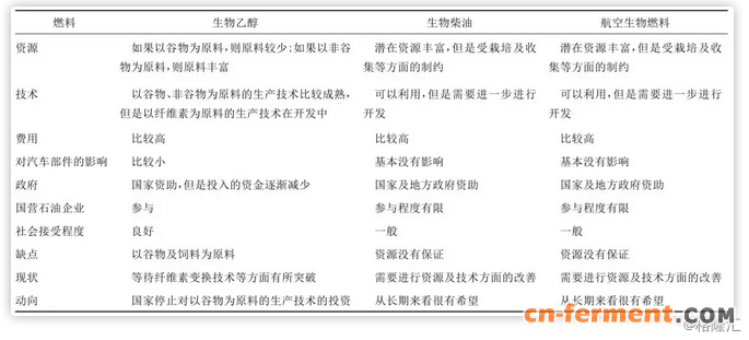 表1. 中国生物燃料的主要特征