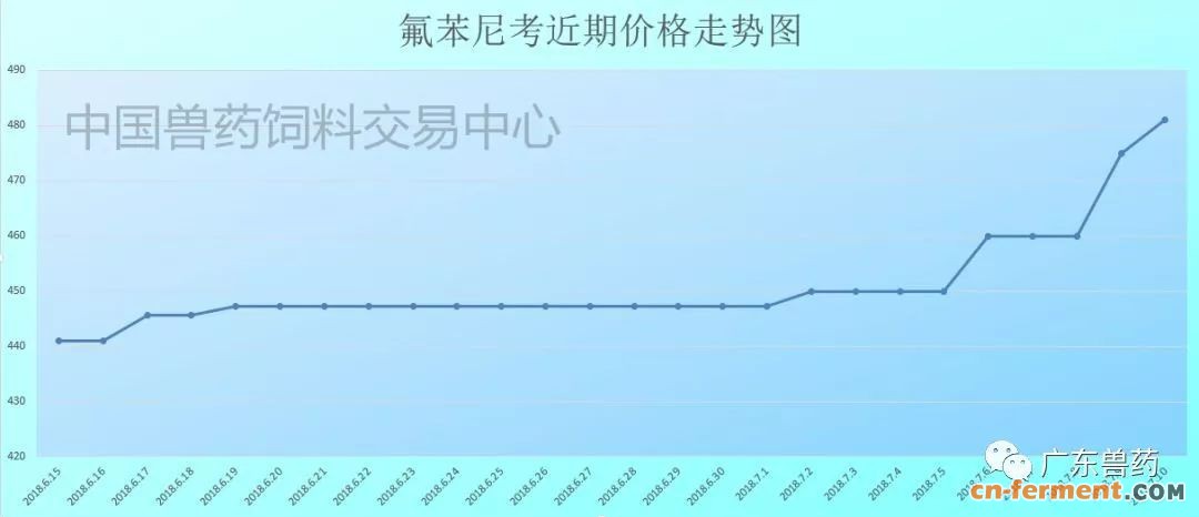 他还表示,当前兽药原料行情上涨的另一个重要因素就是上游生产原料价格上涨。环保督查不仅影响兽药生产企业,还对其上游原料造成重要影响,他说,近期氟苯尼考价格快速上涨的另一个重要因素就是氟苯尼考上游原料因环保督查停产整顿,上游原料价格飙升,生产成本增加引起产品价格上涨。