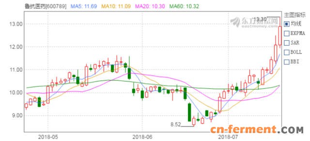 7月18日,A股延续跌势,上证综指跌0.39%、深证成指跌0.97%,创业版跌0.85%,市场缺乏持续热点板块,弱势震荡。在这大盘弱势运行的背景下,鲁抗医药却表现抢眼。7月18日,鲁抗医药现价上升6.70%,报12.90元,近一个月以来大幅上涨44.62%,表现极为出色。