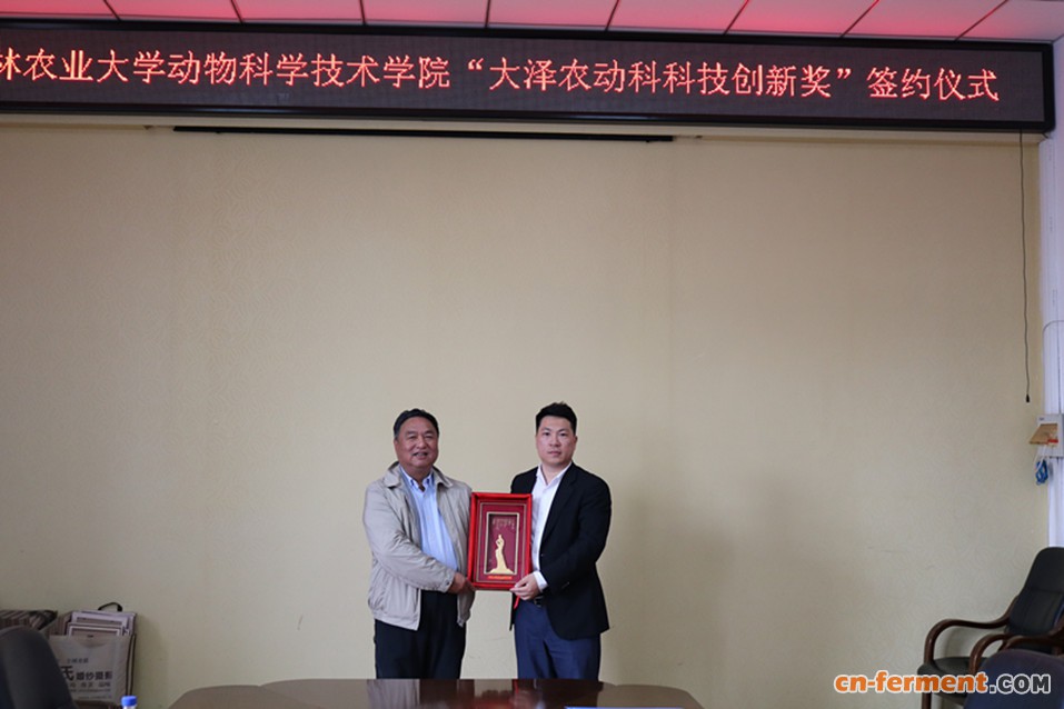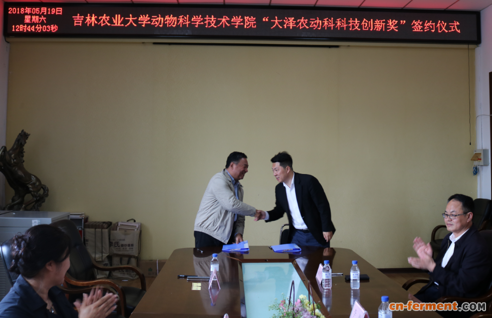 钱爱东院长代表学院与李鲲董事长签订了《吉林农业大学动物科学技术学院“大泽农动科科技创新奖”协议书》。