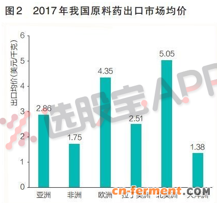 看到了没?美国可是我国原料药出口第二大国;不仅如此,从出口均价来看,北美和欧洲的出口均价是最高的两位,分别为5.05美元/千克、4.35美元/千克,遥遥领先其他洲。