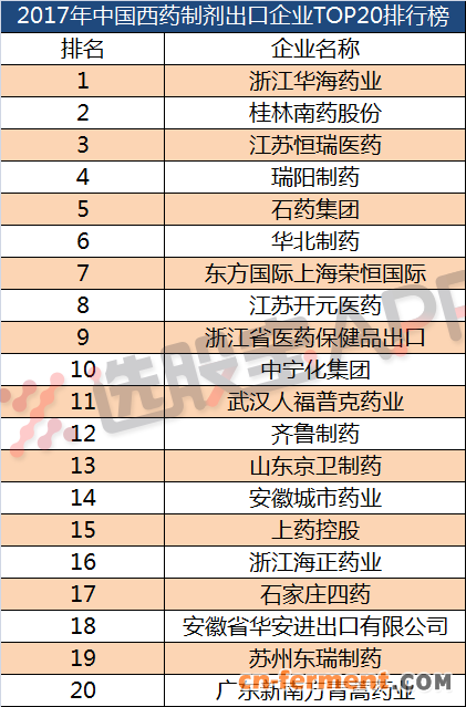 下表为2017年中国西药制剂出口企业TOP20排行榜: