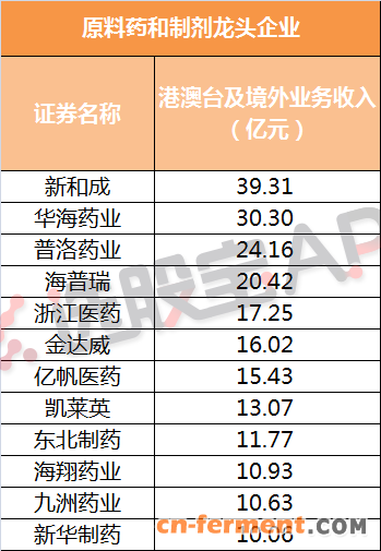 那么,在原料药和制剂出口中,哪些上市公司?选股宝整理了2017年海外收入突破10亿的原料药与制剂企业名单: