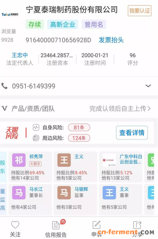 天眼查显示,祁秀萍还在宁夏多维药业有限公司(下称“多维药业”)任职。据《17泰瑞01:宁夏泰瑞制药股份有限公司2017年公开发行公司债券(第一期)募集说明书》显示,泰瑞制药前身即为多维药业。1999年12月,多维药业召开股东会,同意设立多维泰瑞,注册资本300万元。