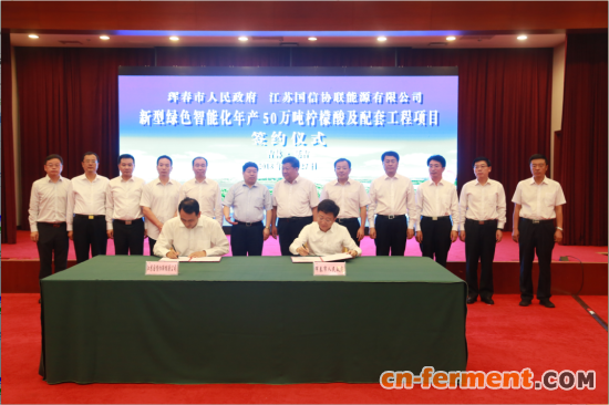 8月27日,珲春新型绿色智能化年产50万吨柠檬酸及配套工程项目签约仪式在延边宾馆举行,中国图们江区域(珲春)国际合作示范区管委会与江苏国信协联能源有限公司签定框架协议书。