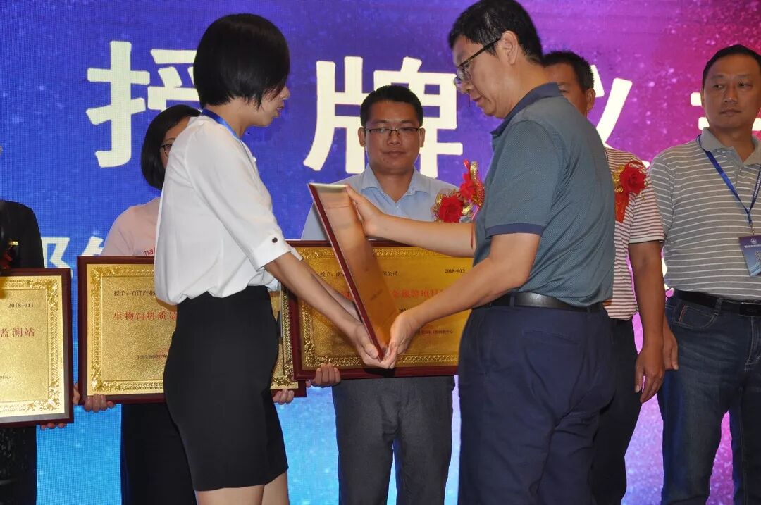 最后,孔亮副局长和蔡辉益博士,一同为农业农村部生物饲料质量安全预警项目监测站进行了授牌仪式。同时盛永杰提到:“授牌不仅仅是荣誉和认可,更是沉甸甸的责任和担当。”