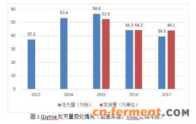 另据碧生源公司的年报信息,由该公司负责销售的来利片在2017年实现6269万元的销售额,在奥利司他TOP5产品中占比53.82%,依此计算,2017年全国奥利司他整体市场规模仅为约1.2亿元。
