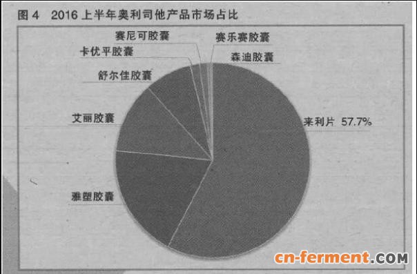 图4 2016年上半年奥利司他产品市场占比