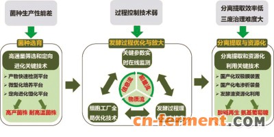 这一菌种—发酵—分离—资源化利用全链条关键技术,主要由四大“法宝”组成——基于高通量筛选和恒化培养定向进化相结合的高性能生产菌高效选育技术、基于先进传感分析的发酵过程关键指标参数实时在线监测技术、基于黑曲霉细胞工厂氧代谢全局调控的高效发酵技术、优化清洁分离提取技术及废渣资源化利用技术。