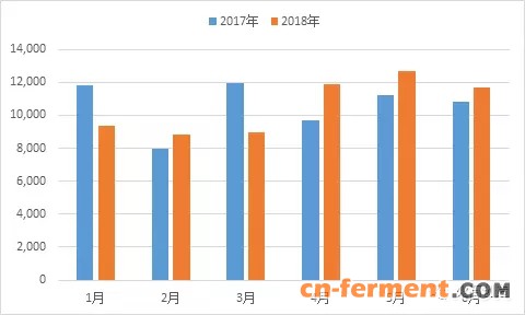 图2 2017-2018年上半年我国对美出口情况(万美元)