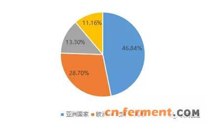 图3 我国原料药出口市场分布情况 数据来源:中国医药保健品进出口商会